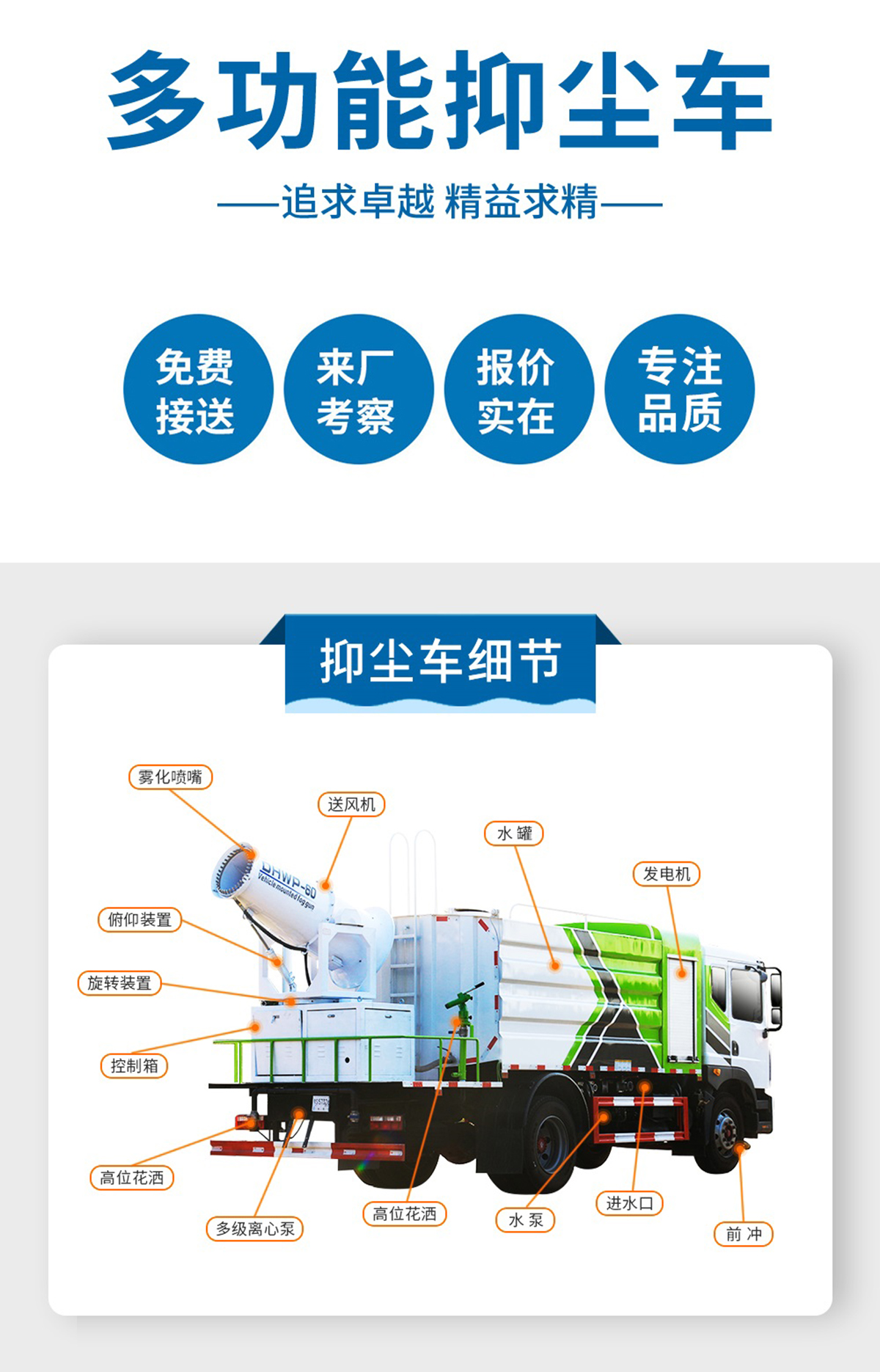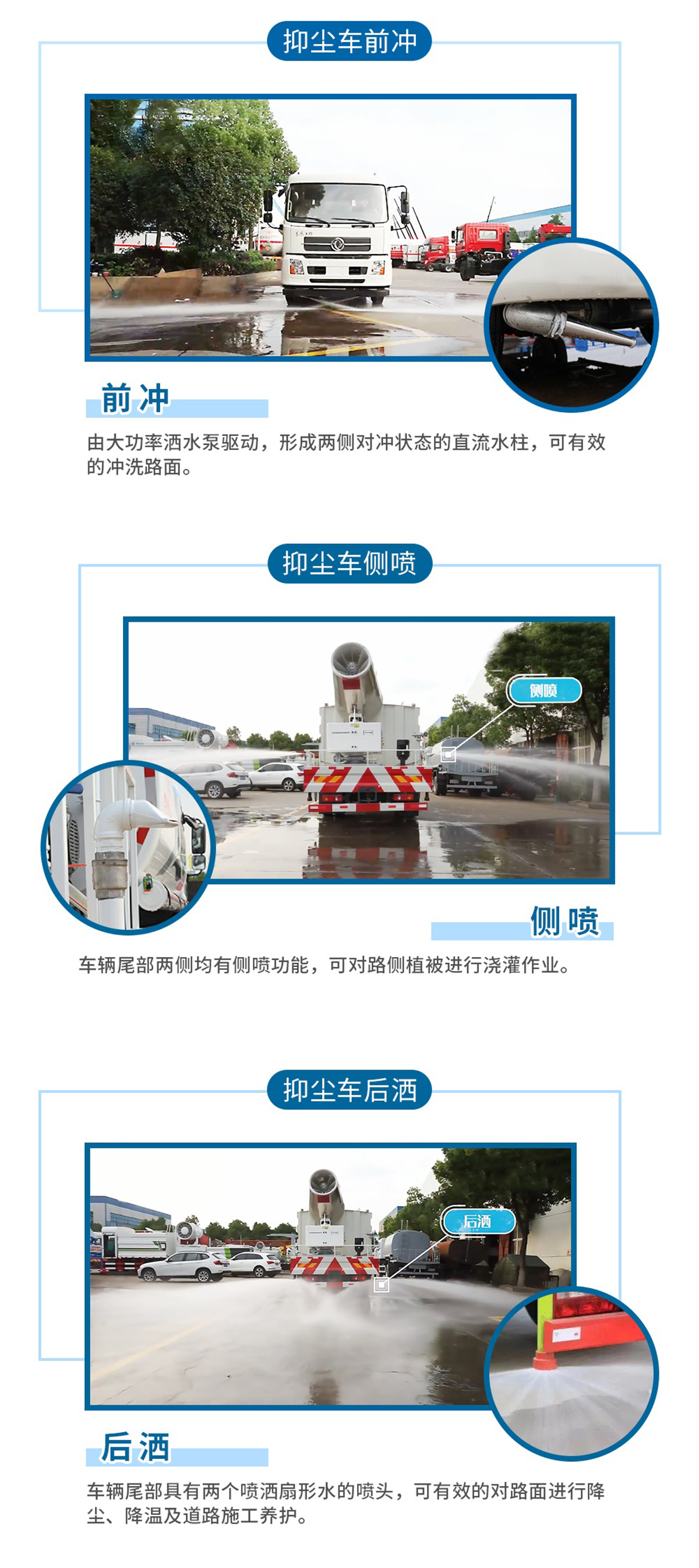 標配 前沖、后灑、側噴、后平臺高炮、自流閥、消防接頭、濾網、噴頭、帶自吸自排。