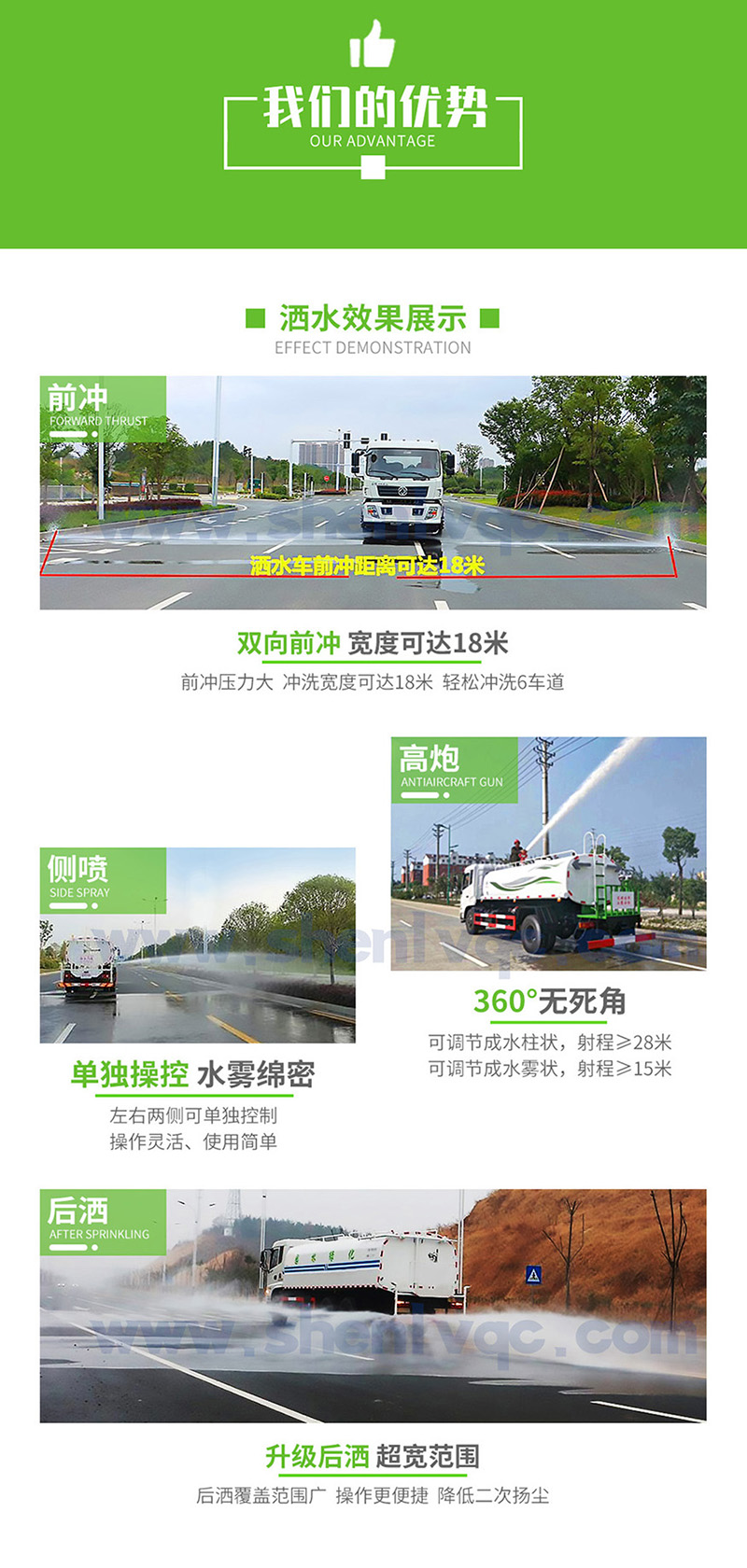 前沖灑水寬度:前沖可達15米