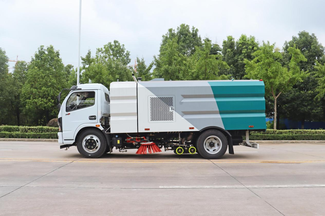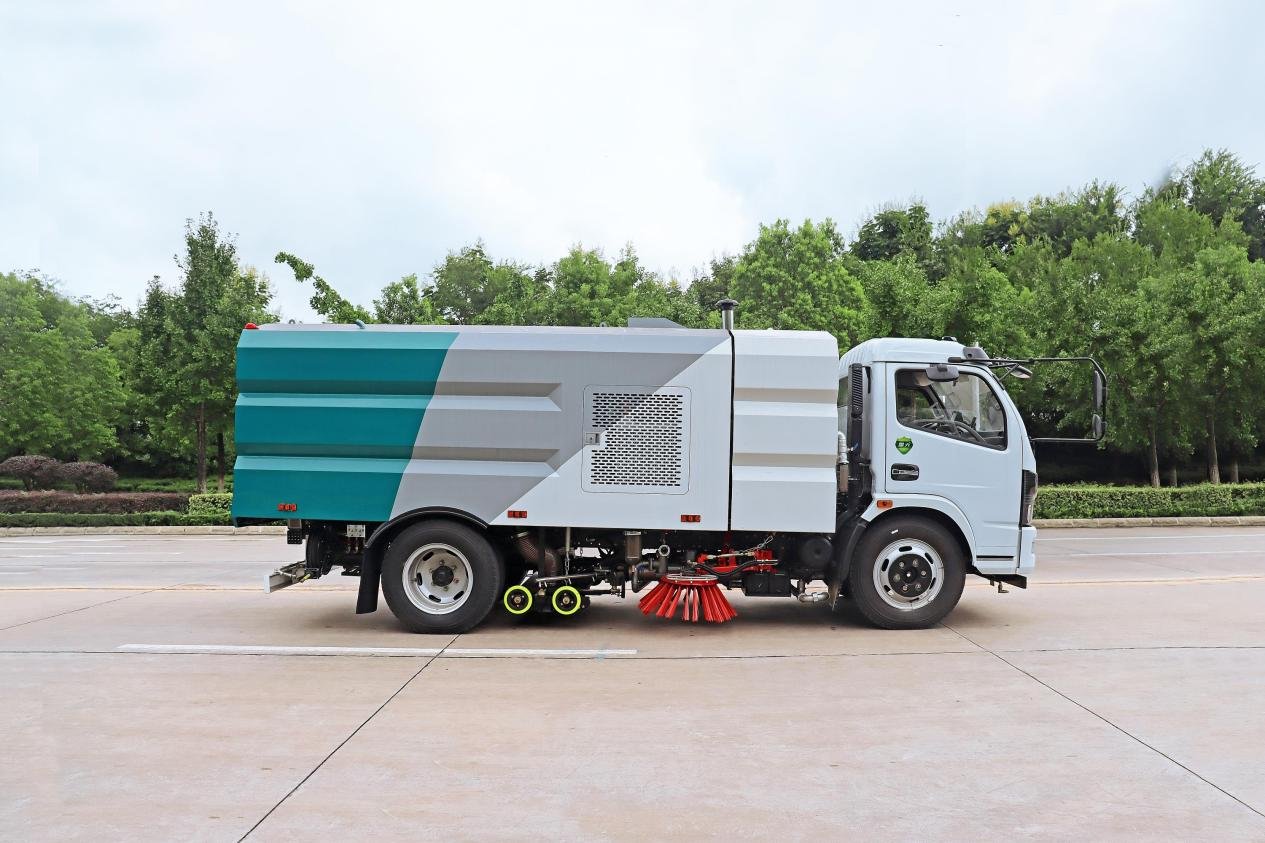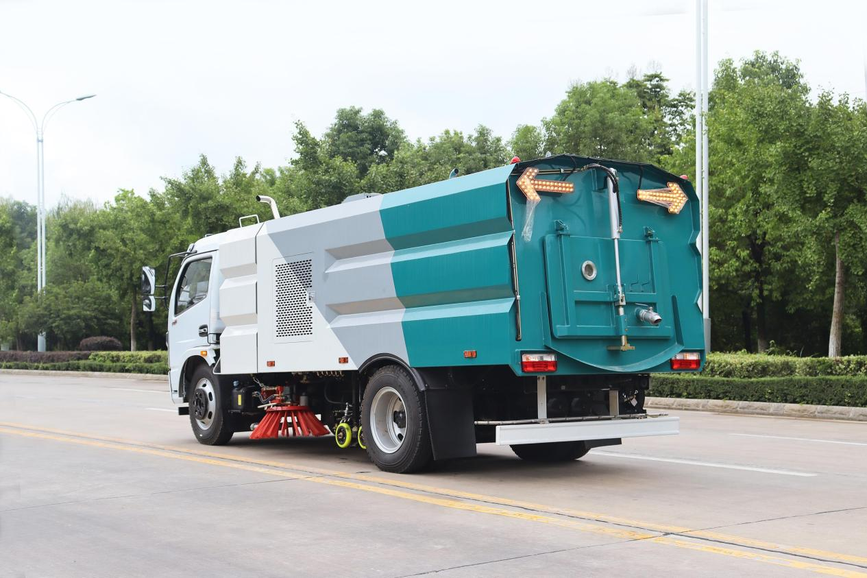 本車采用主、副兩套發動機系統,主發動機隨底盤選裝,副發動機為江西五十鈴87馬力柴油機;吸塵系統使用免維護自動離合器   及高品質免維護風機,進口防水材料濾筒,車輛具有自動脈沖清理功能,可設置脈沖間隔時間,主吸盤清吸1.9米,左右副吸盤最大清吸寬度2.8米,最大吸入顆粒100mm,吸凈率99﹪。駕駛室內電液系統集中控制,可隨時監控車輛左右后運行狀況。車輛尾部加裝噴霧壓水域裝置及過濾系統杜絕二次揚塵。